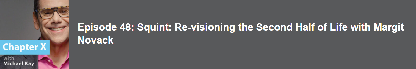 Margit Is interviewed by Micahel K, for Chapter X, a podcast about discovering life after work. Margit shares her own journey of self-discovery after leaving her business of 25 years, and shares stories from her new book, Squint: Re-visioning the Second Half of Life. I n this episode, margit shares her wisdom on family relationships, changing priorities and the importance of having a Plan B in life.